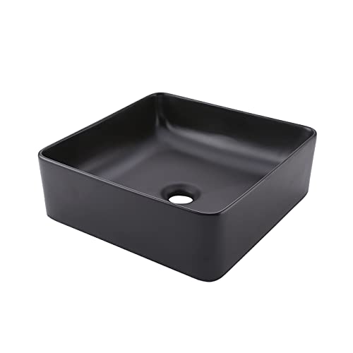 houzz KES Bathroom Vessel Sink 14 Inch Above Counter Square Ceramic Countertop Sink for Cabinet Lavatory Vanity Black, BVS122-BK